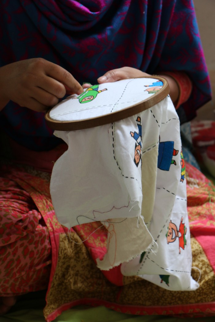 Engels leren is evident en gemakkelijk voor ons maar niet voor de werkneemsters van het Asha borduuratelier. Een stevige portie enthousiasme, leergierigheid en doorzettingsvermogen is een minimum als je laaggeschoold bent en in moeilijke omstandigheden woont en leeft. Het is echter een wereldtaal en kennis ervan is ook in Bangladesh een streepje voor in het leven. Om deze vrouwen te empoweren organiseren we sinds kort Engelse lessen in hun vrije tijd.