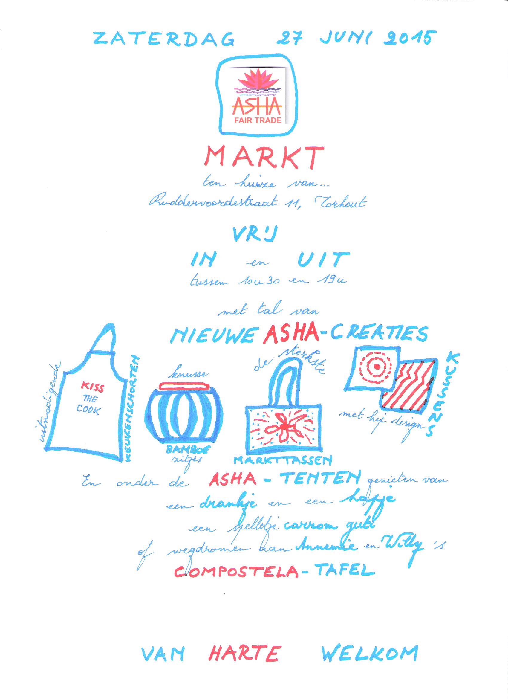 Zaterdag 27 juni ben je tussen 10u30-19u van harte welkom ten huize van… Daar houdt Kristien een Asha Fair Trade markt. ‘t Zal de moeite zijn! Van harte welkom!